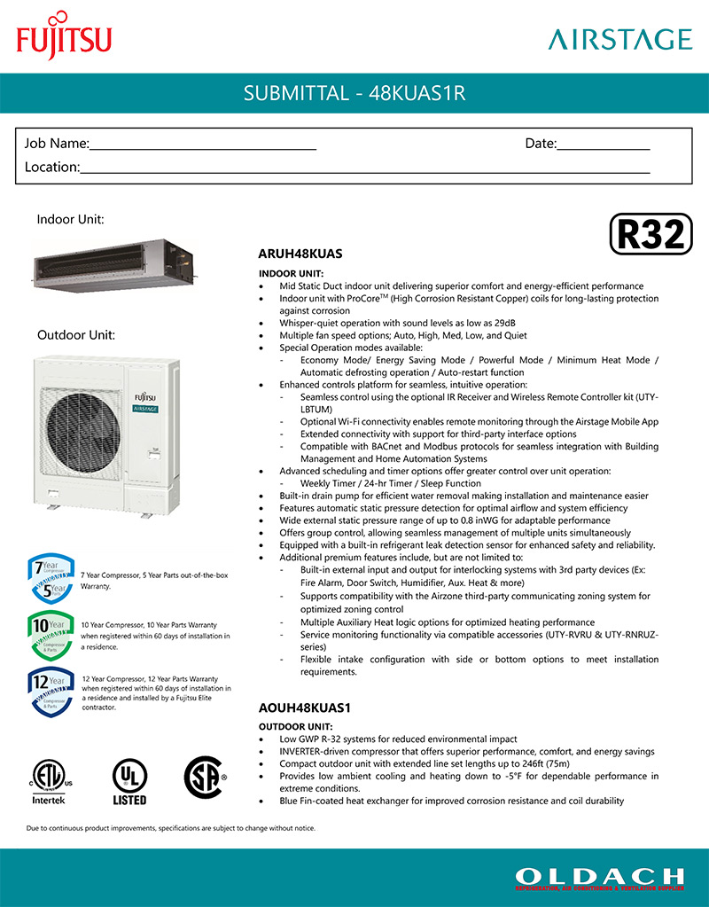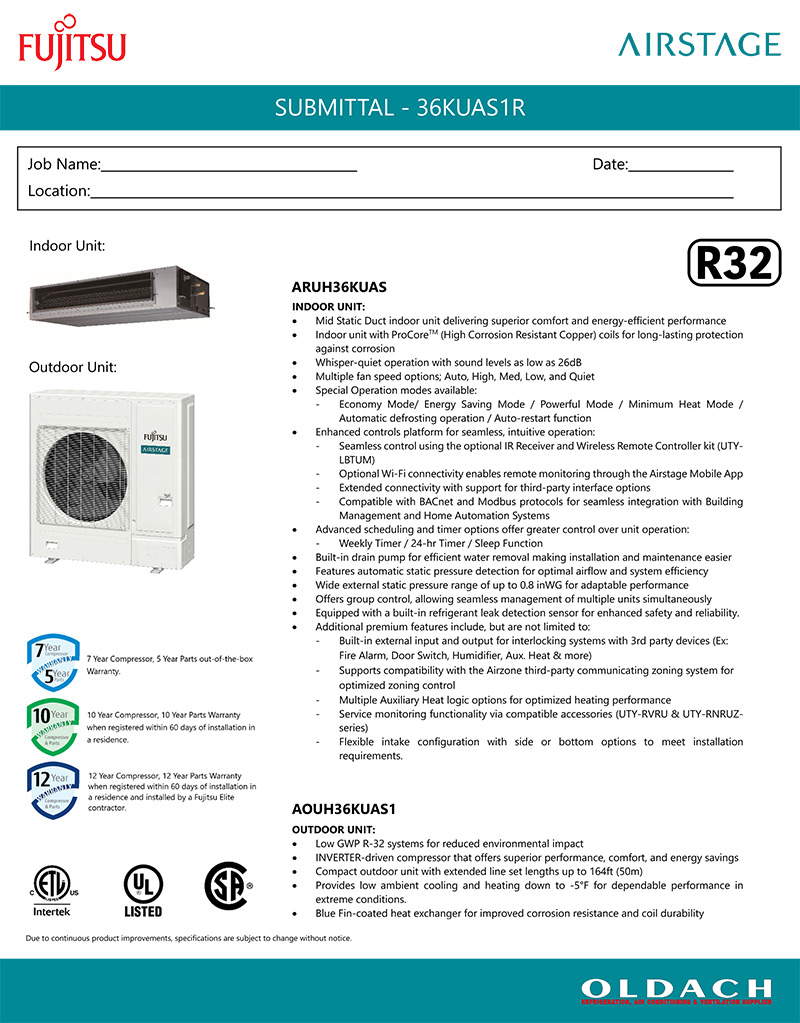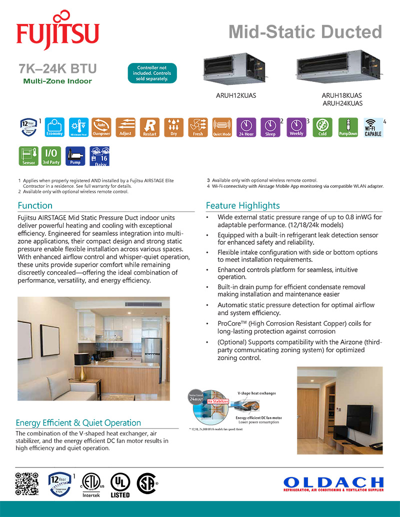 Fujitsu Medium Static Ducted – ARUH Series